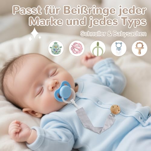 Qualité de sécurité : chaîne de sucette en tissu de coton pur et en hêtre, douce et agréable pour la peau, sans danger pour la peau sensible de bébé. La tête du clip comporte trois trous pour correspondre aux cordons élastiques, qui sont de haute qualité et durables.