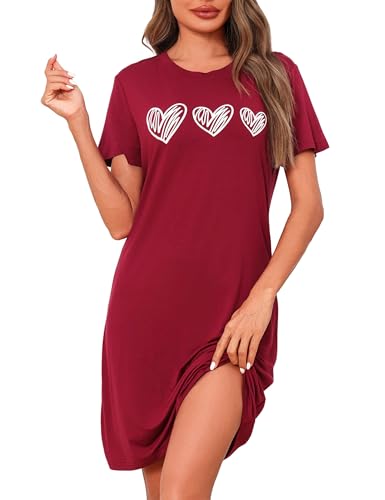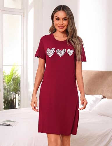 Chemise de Nuit Femme Coton – Robe de Nuit Confortable à Motif Cœurs