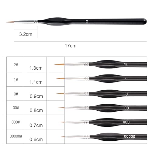 Ce lot comprend six tailles de pinceaux essentielles (00000, 000, 00, 0, 1, 2) pour répondre à tous vos besoins. De la plus petite touche de lumière sur un portrait aux lignes les plus fines sur une miniature, vous aurez toujours le bon outil en main.