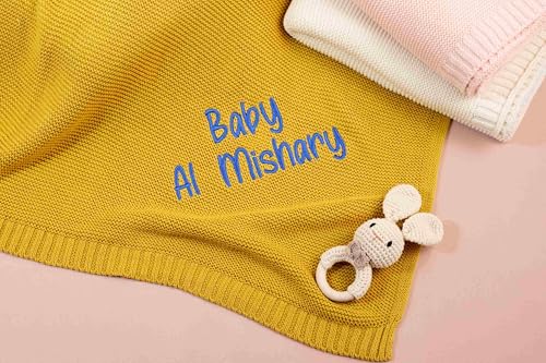 Couverture personnalisée pour bébé avec nom : chaque couverture est brodée à la main avec le nom de votre bébé, assurant une touche unique et personnelle. Choisissez parmi différents styles de police et couleurs de fils pour créer un souvenir personnalisé qui reflète l’individualité de votre bébé.